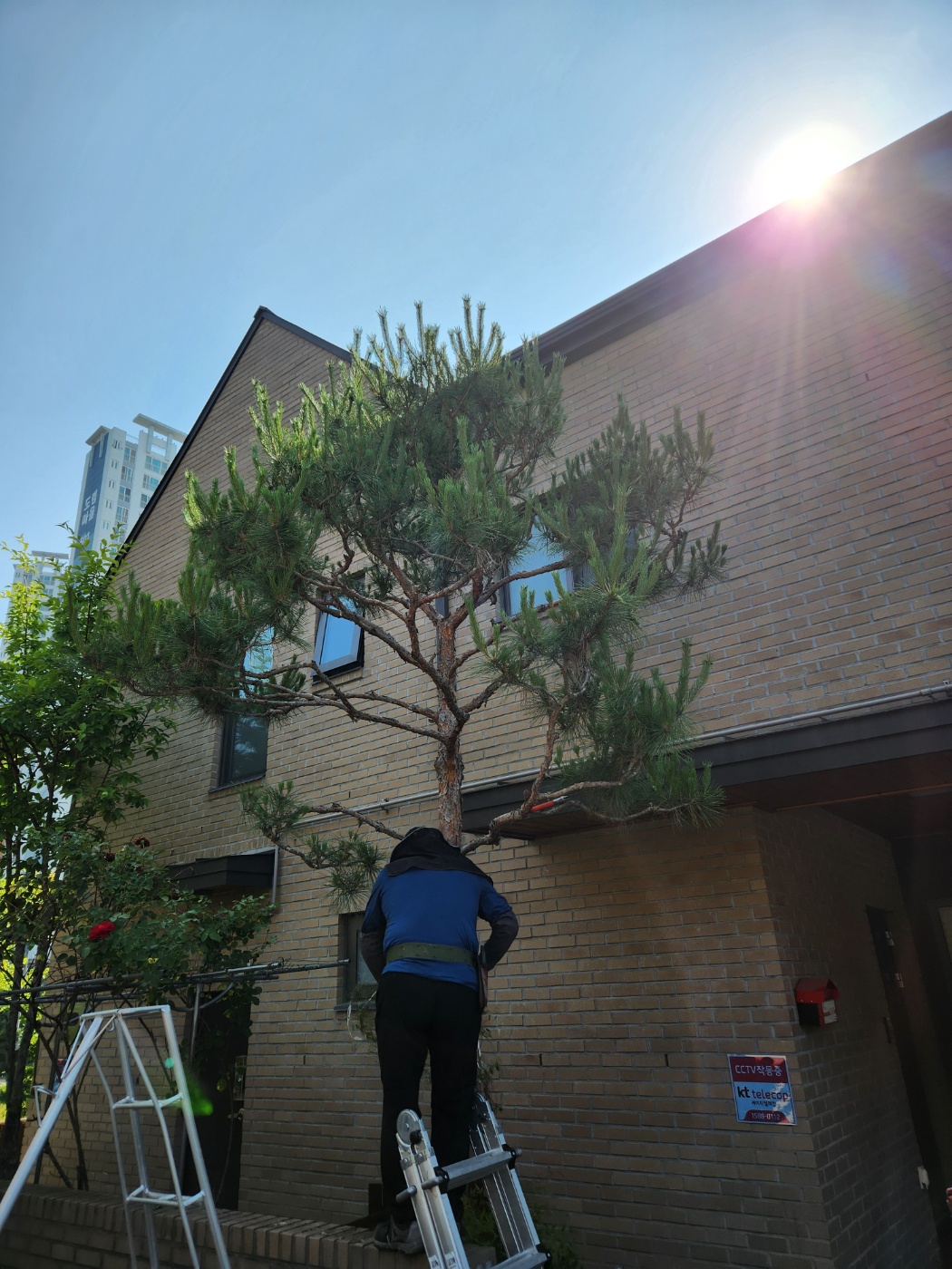 도담동의 주택에 전지의뢰가 들어왔다. 주택의 출입구 쪽과 주택의 중앙에 배치된 나무 각 두 그루였다. 나무가 잎은 많지 않았지만 키가 너무 자라서 이층 높이를 넘나들 정도이다.